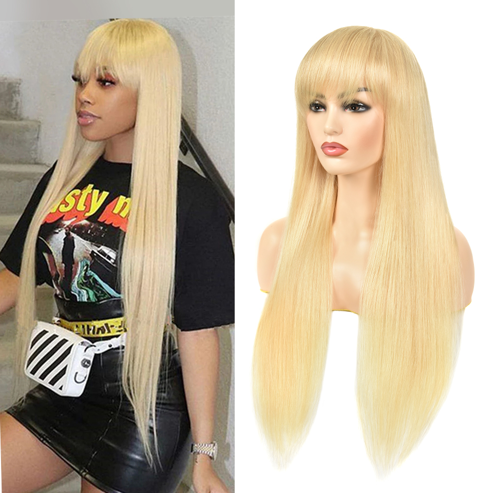 613 blonde droite pleine machine faite aucune perruques avant de lacet avec une frange pour les femmes 12-24 pouces