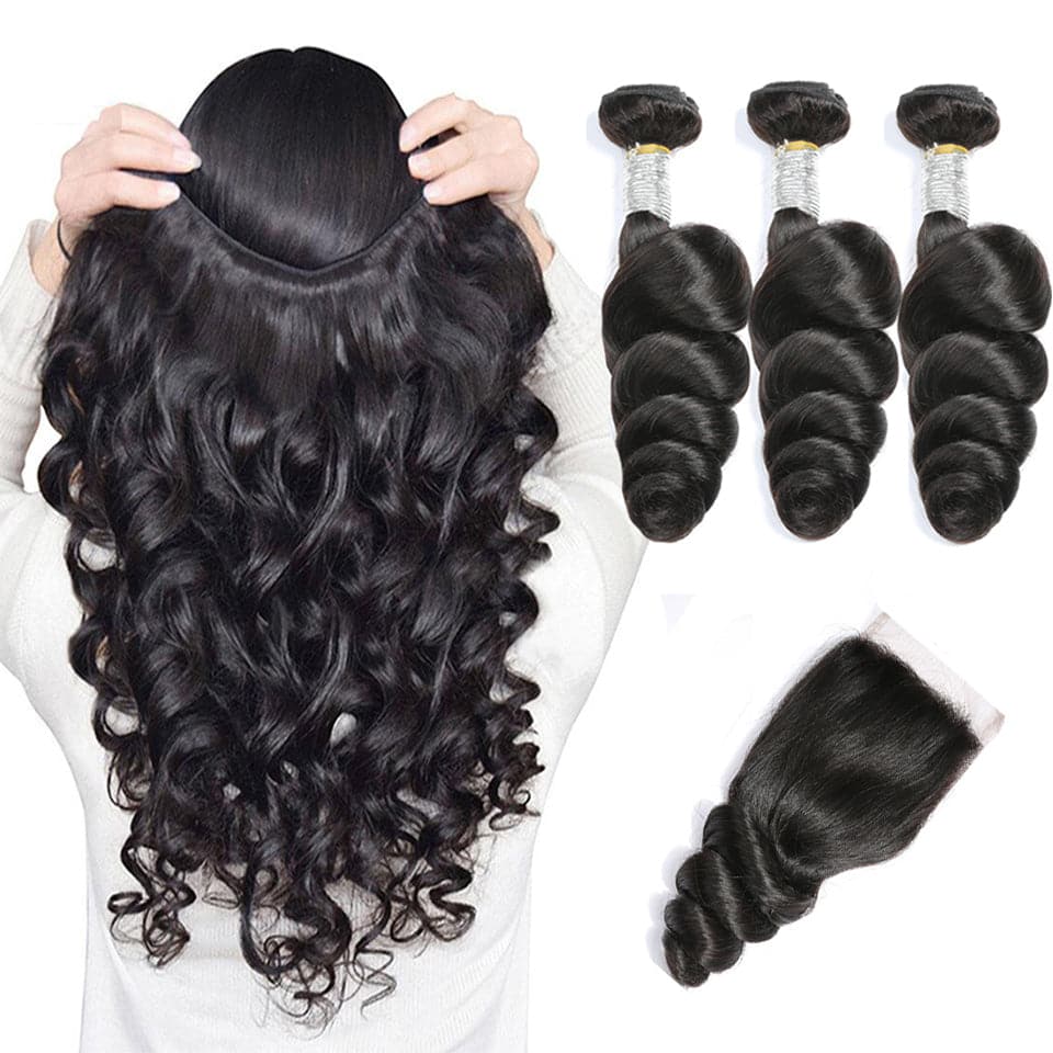 Vague lâche 3 faisceaux avec dentelle suisse de cheveux humains remy brésiliens à fermeture 4x4