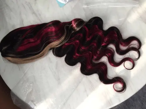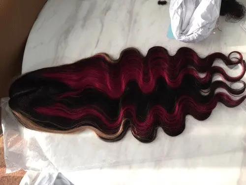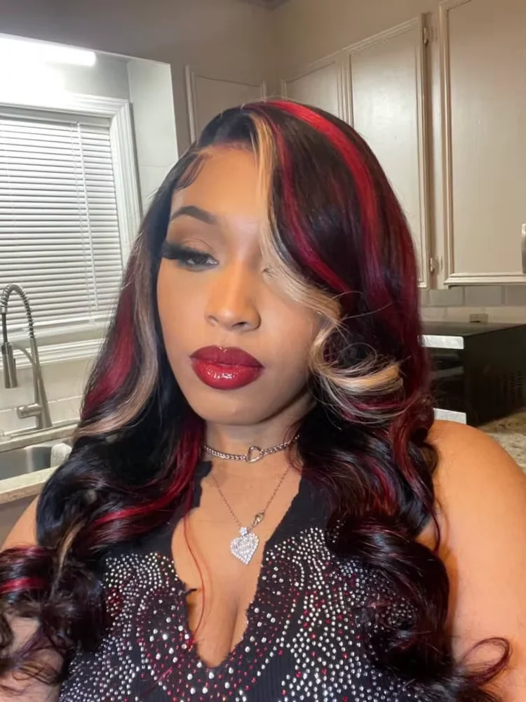 | Type de cheveux | Mettez en surbrillance les perruques avant de lacet de vague de corps de couleur blonde rouge |