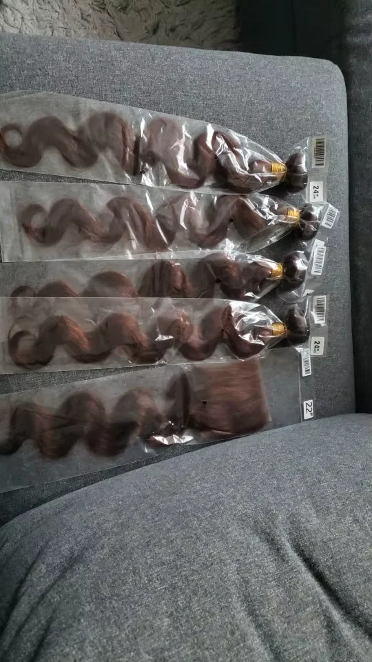 lumiere # 4 Brown Body Wave 4 Bundles Avec 4x4 Lace Closure Pre Colored Human hair