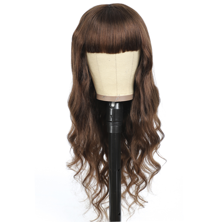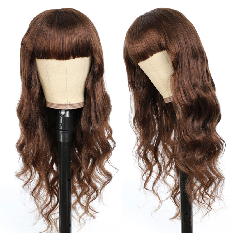 # 4 Brown Body Wave Full Machine Made None Lace Virgin Perruques de cheveux humains avec une frange