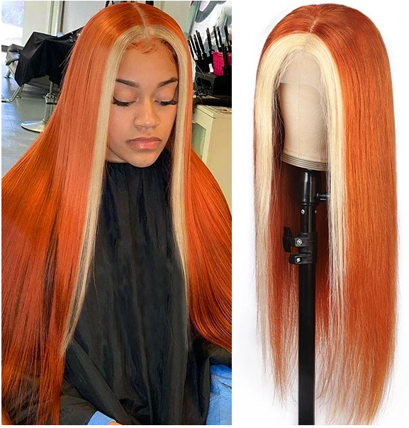 | Type de cheveux | 4X4 13X4 13x1x4 Lace Front Ginger Color with Blonde Highlights Straight Wig 150% |