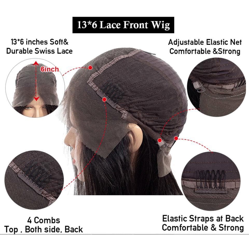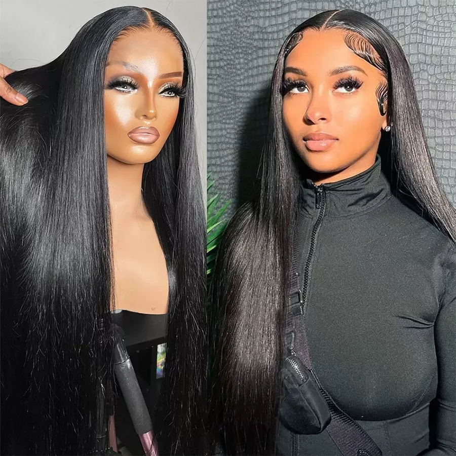 | Type de cheveux | Perruques de cheveux humains longs et raides 13x4 Lace Frontal sans colle pré-plumées avec des cheveux de bébé |