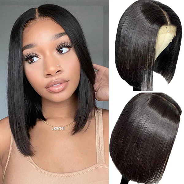 Type de cheveux 150% densité corps ondulé court Bob 13x4 dentelle frontale perruques de cheveux humains pré plumé