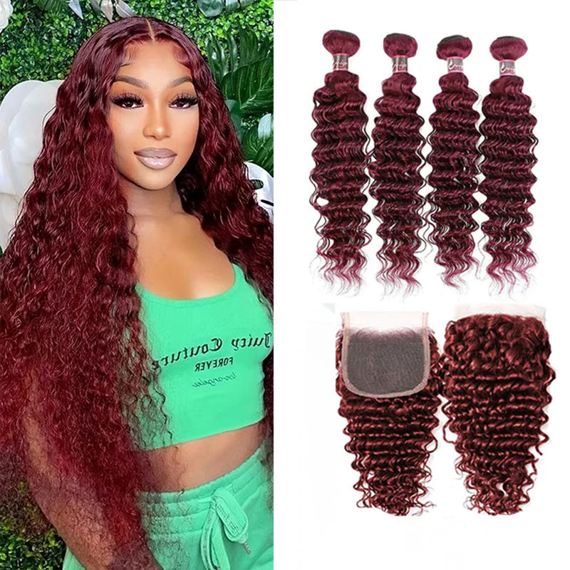 350 Ginger Orange Deep Wave 4 Bundles avec 4x4 Lace Closure Brazilian Remy Hair