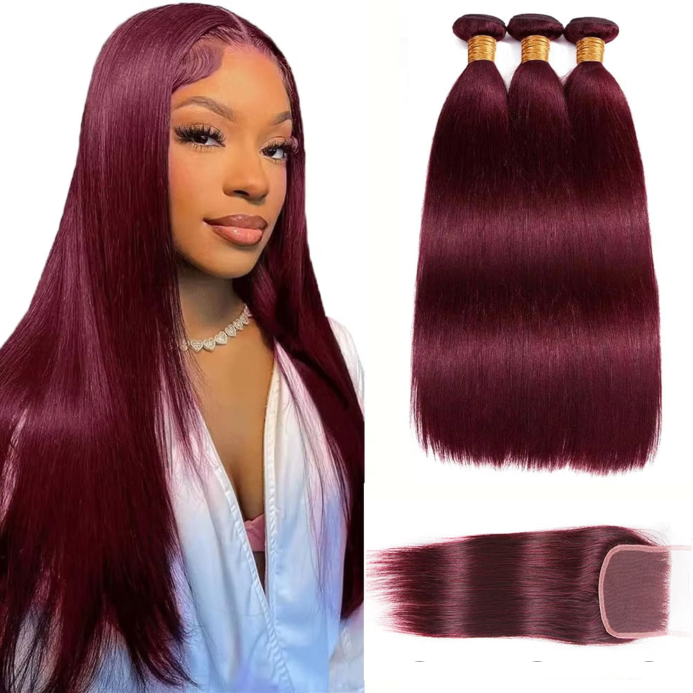 1B/BURG Ombre Cheveux Raides 4 Faisce...