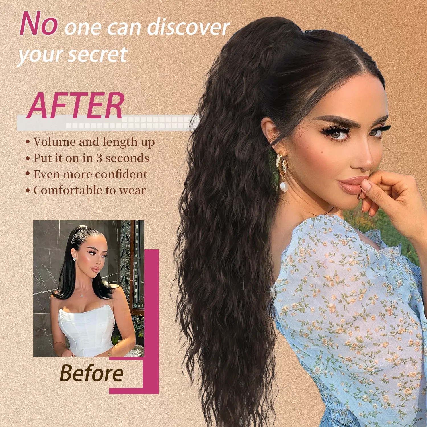 Extensions de cheveux humains de queue de cheval de griffe de vague de corps