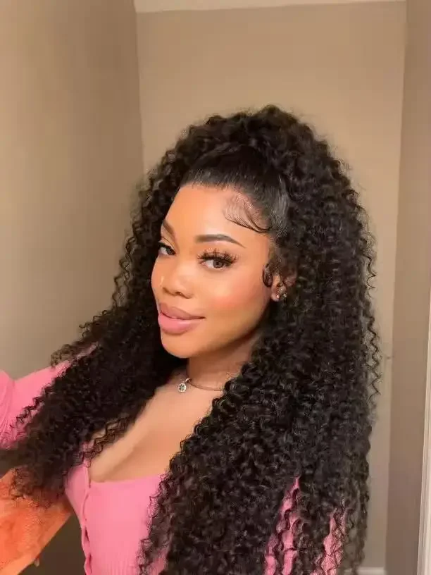 | Type de cheveux | Pince à cheveux humains en queue de cheval bouclée afro avec cordon de serrage dans les extensions de cheveux queue de cheval pour afro-américain |