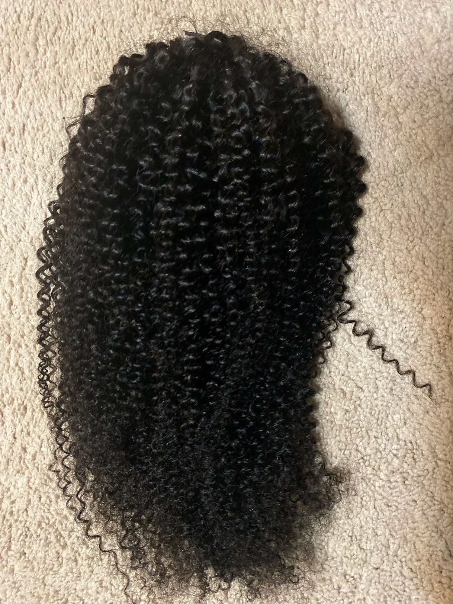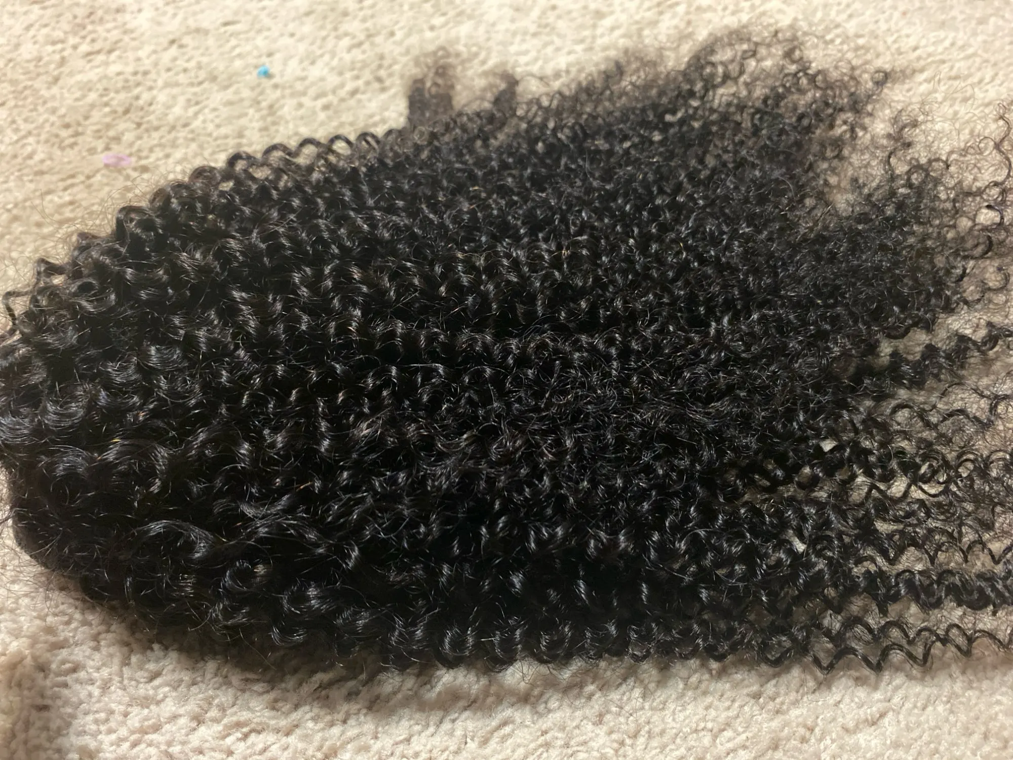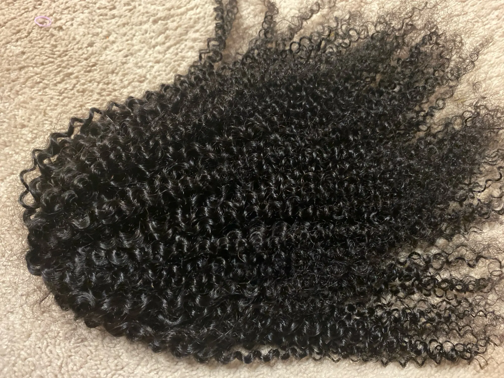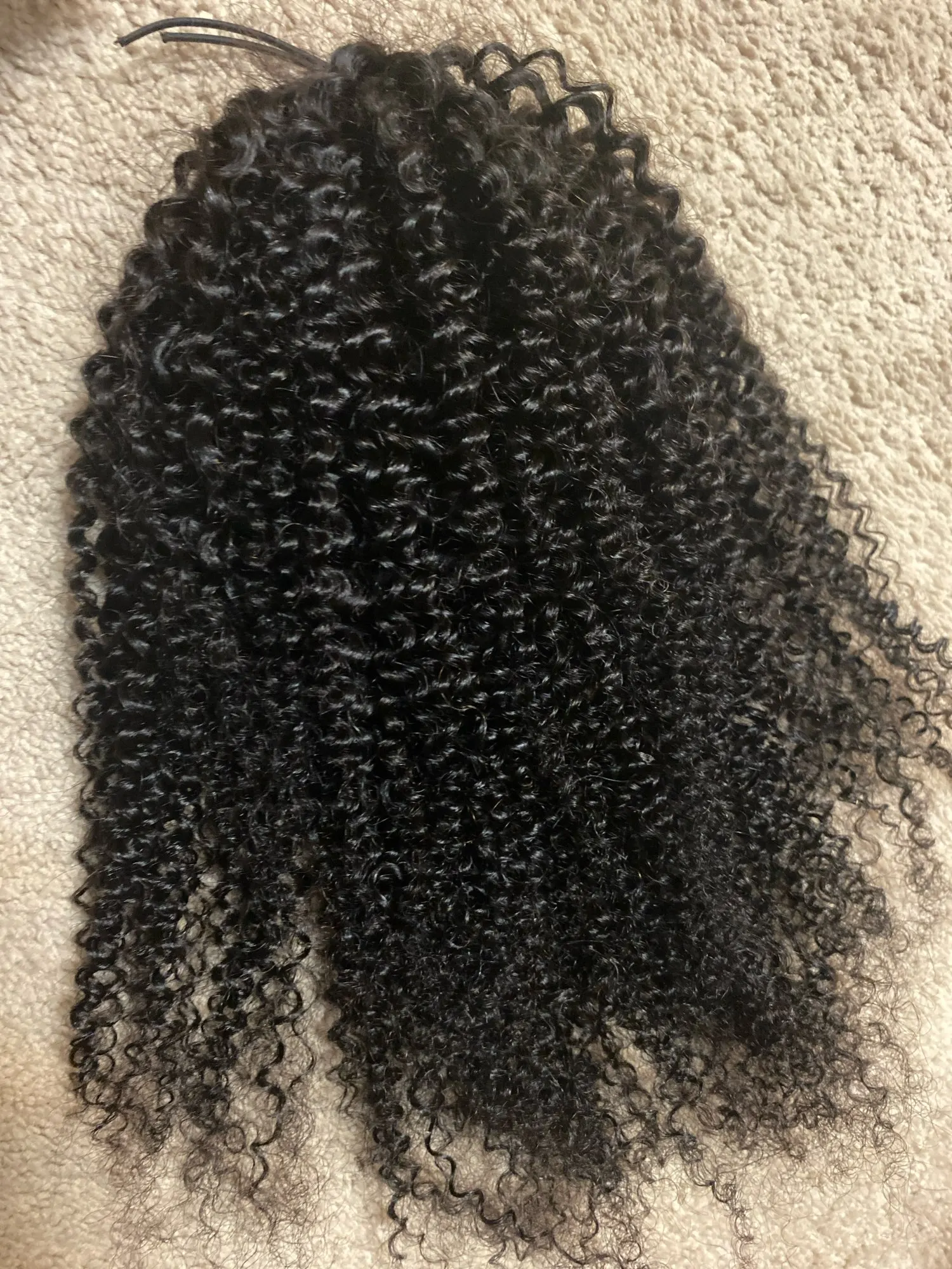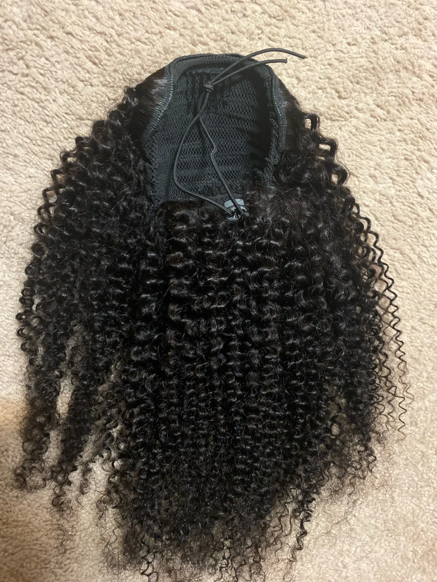 | Type de cheveux | Cheveux humains bouclés crépus pour les femmes Remy Clip Ins Extensions de queue de cheval à cordon brésilien |