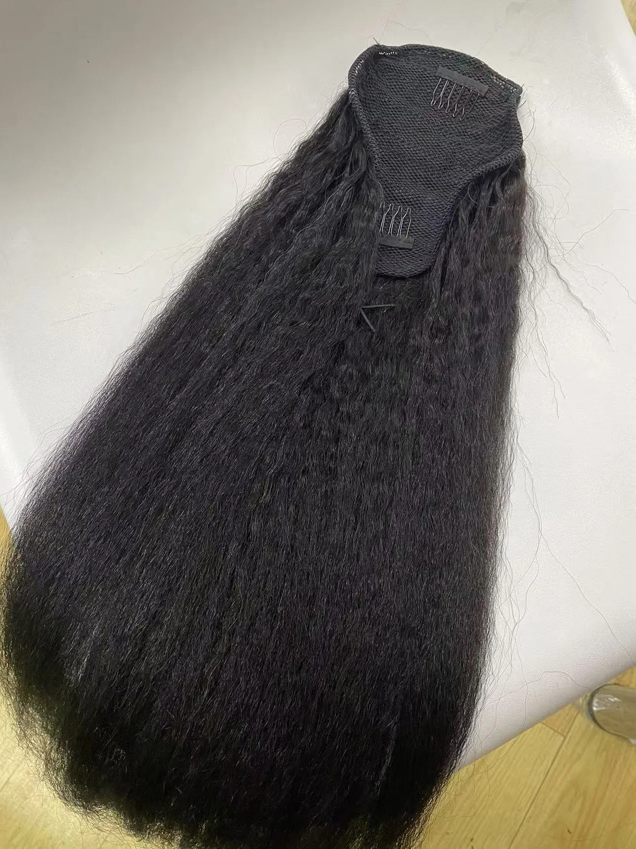 | Type de cheveux | Kinky Straight Hair Drawstring Ponytail Extensions Remy 8-26 pouces Long Clip In Pony tail |