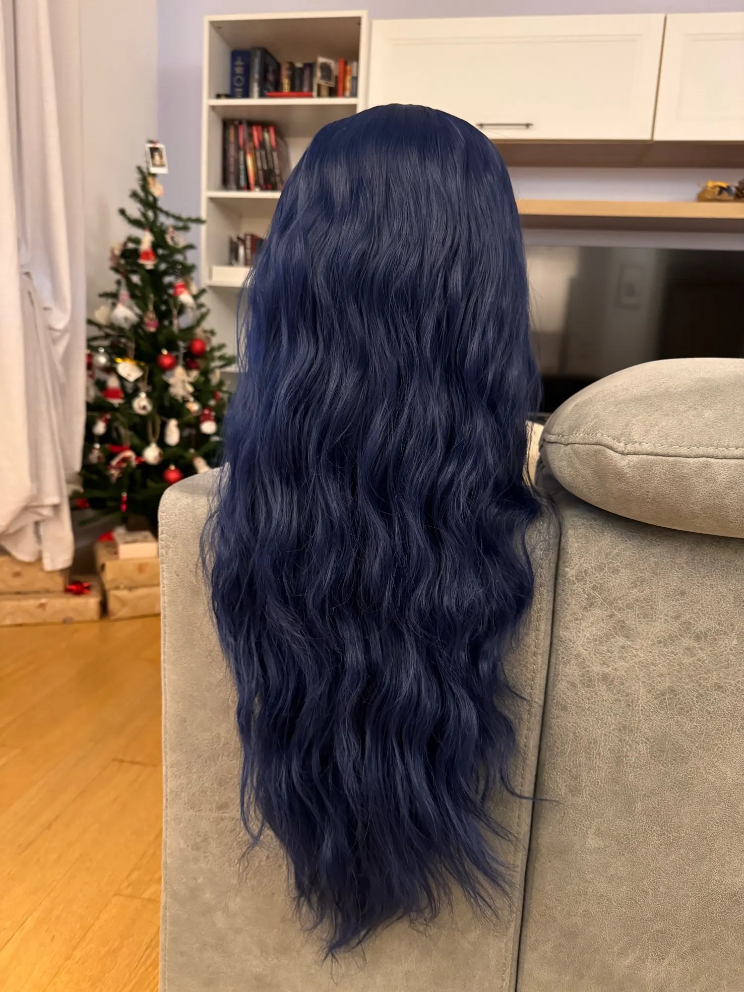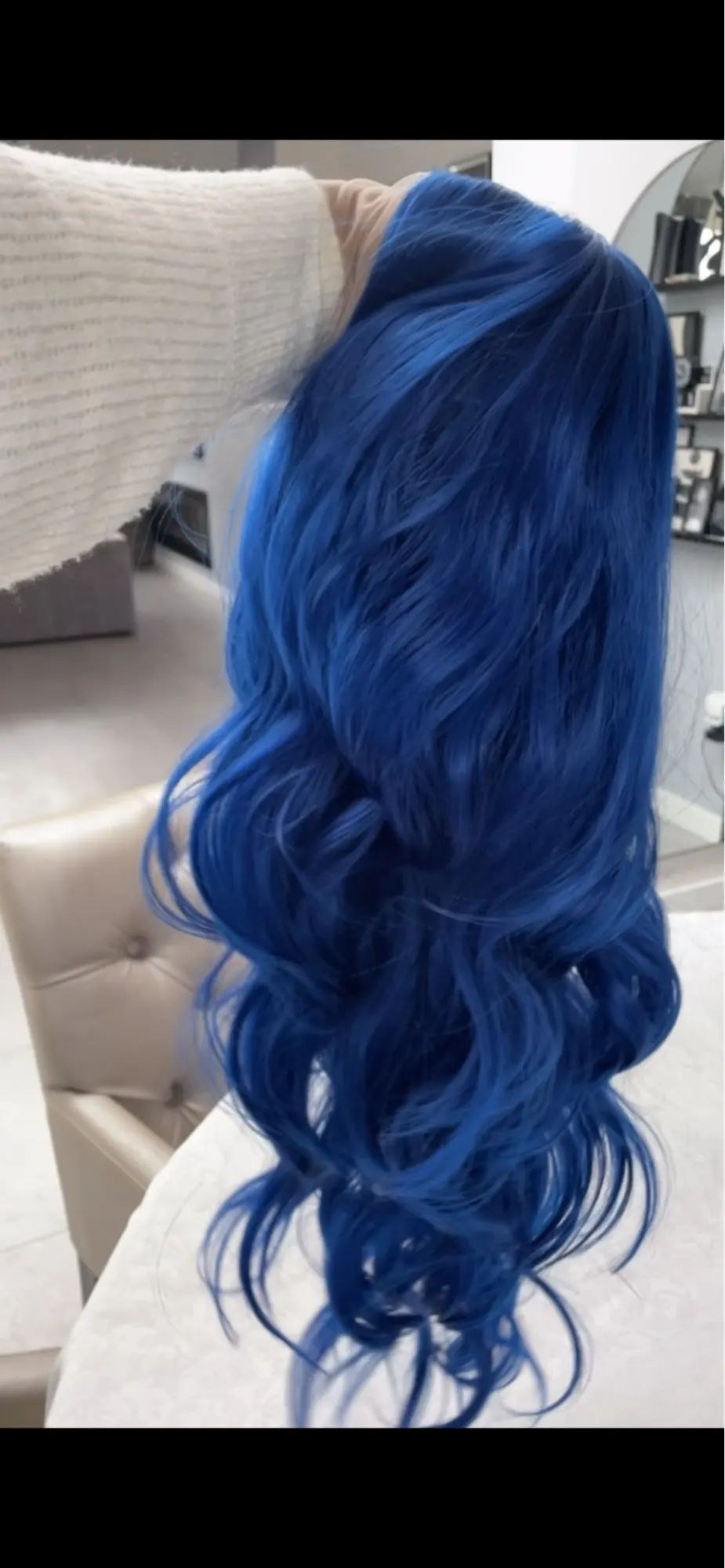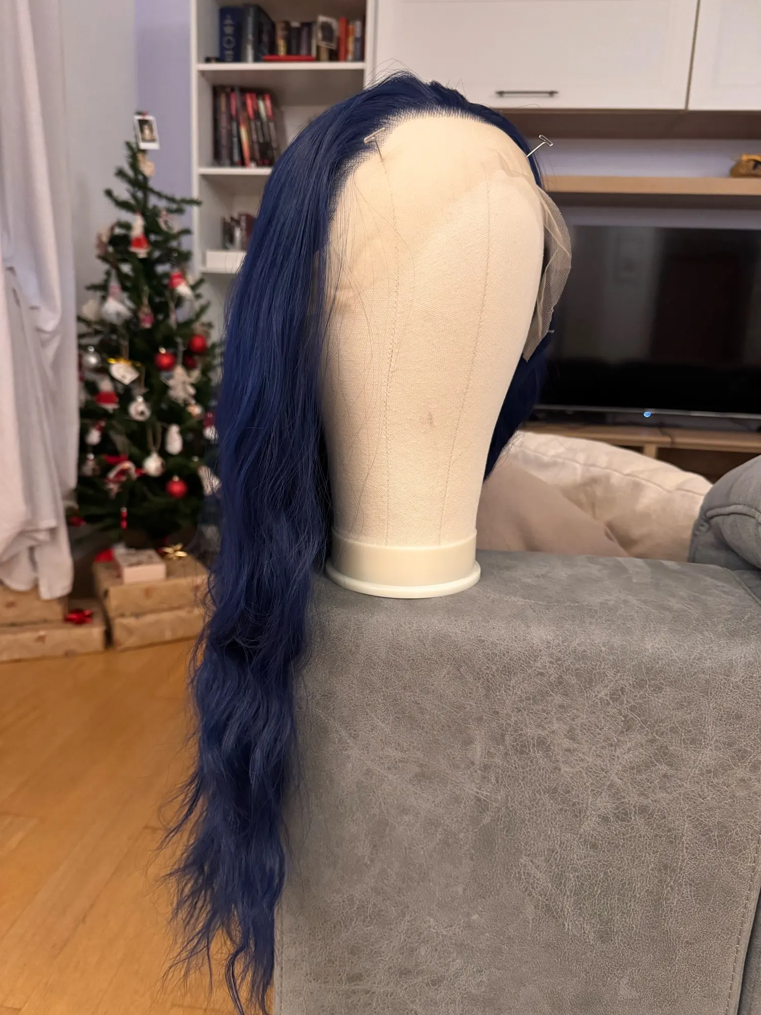 Fashion Blue Lumiere Dark Blue Bomb Pre Colored 13x4 Body/Straight Wave Lace Frontal Human Hair Wig (No Code Need)