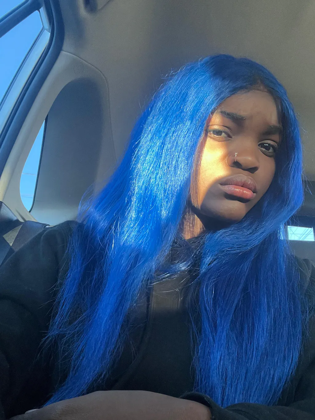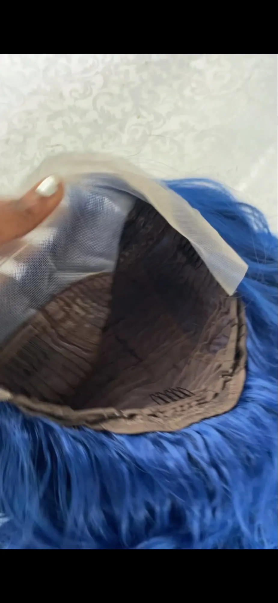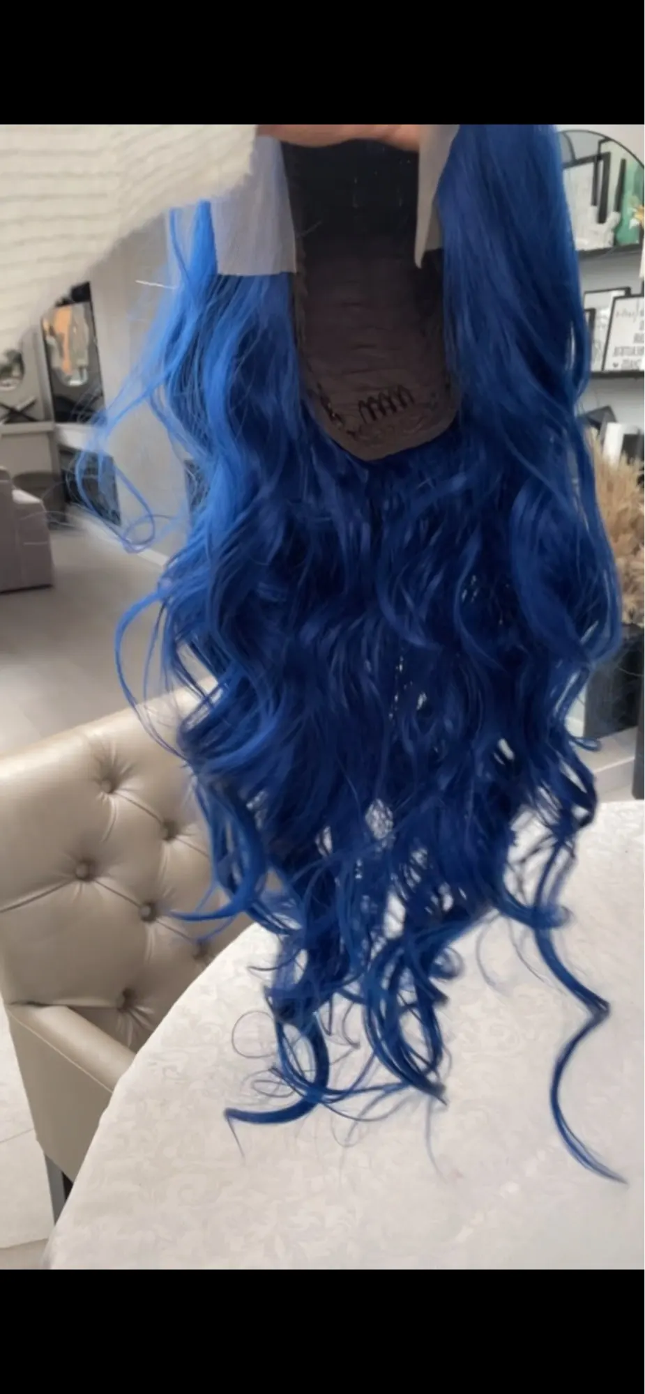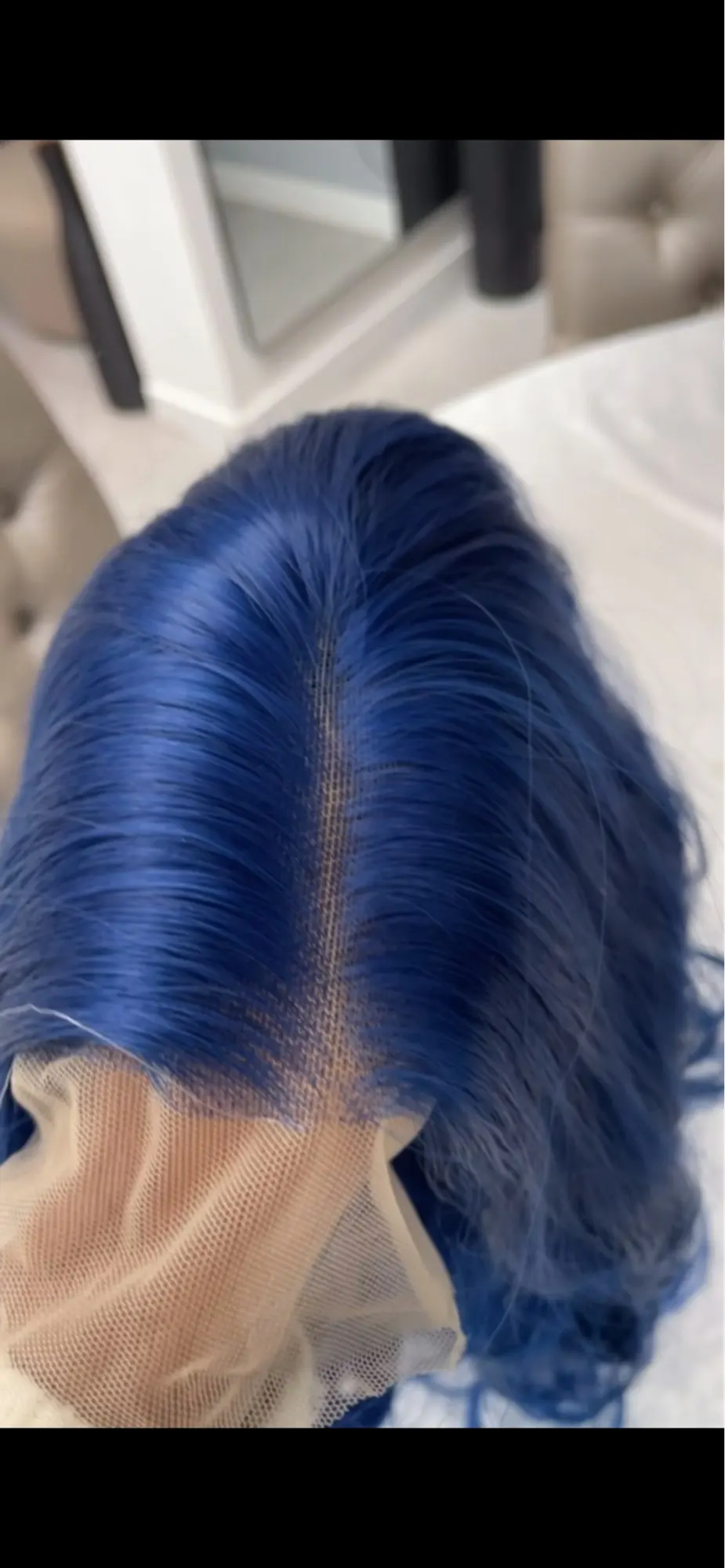 Fashion Blue Lumiere Dark Blue Bomb Pre Colored 13x4 Body/Straight Wave Lace Frontal Human Hair Wig (No Code Need)